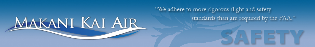Makani Kai Air's commitment to safety extends beyond the due-diligence it performs. We receive regular, unscheduled safety audits and hold ourselves to more rigorous flight and safety standards than are required by the FAA. We have a dedicated safety manager, are subject to both regular and unscheduled safety audits by independent auditors, schedule regular safety meetings with pilots and staff, and have clearly defined flight operating standards and weather minimums to provide safe and consistent day-to-day operations.